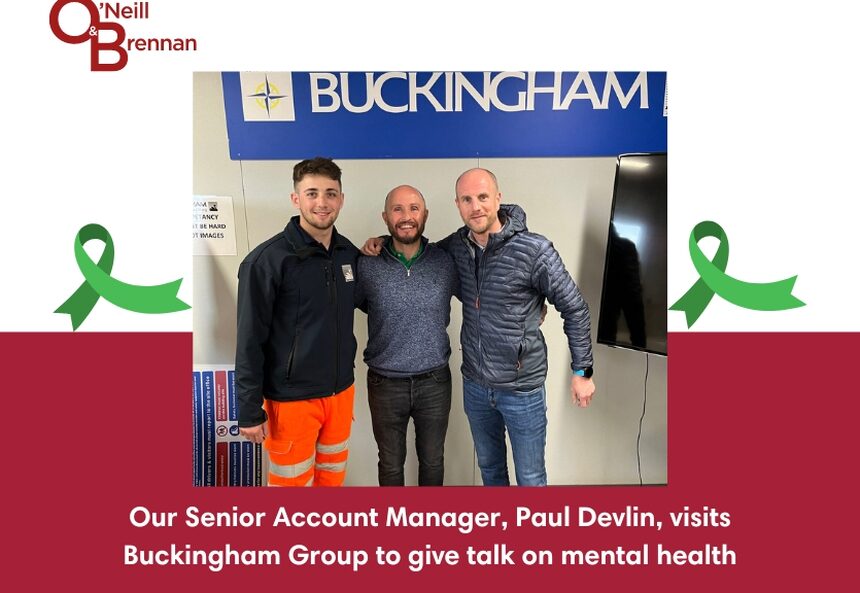 O'Neill & Brennan's Senior Account Manager, Paul Devlin, visited Buckingham Group Contracting Ltd last week to give a talk to the workers on site about mental health.