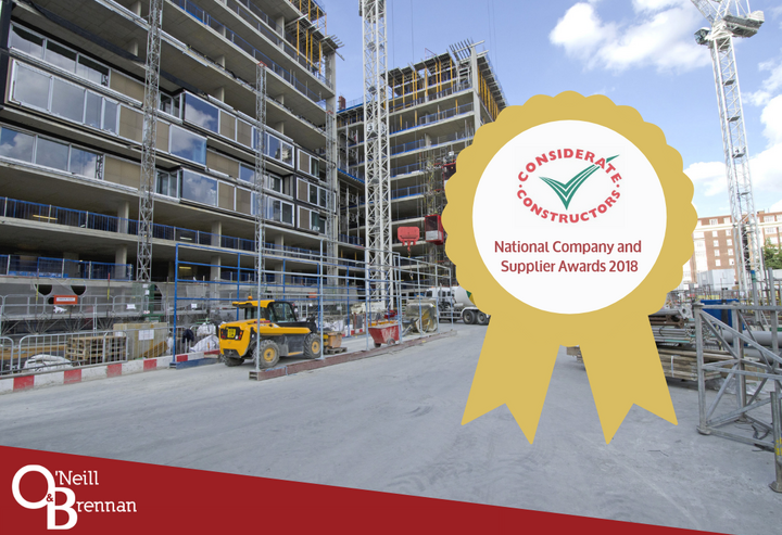 O’Neill & Brennan Site Services Ltd are delighted to announce that they have been awarded a 2018 National Company and Supplier Award based on Logistics support excellence. These awards celebrate companies and suppliers registered with the Considerate Constructors Scheme that have