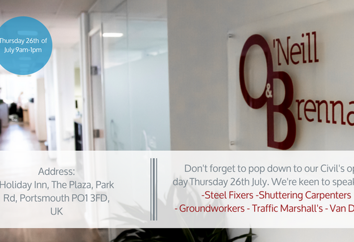 If you're looking for long term work in the South, come and pay us a visit between 9am and 1pm this Thursday 23rd July in Gun Wharf Quay, Portsmouth. We have positions available in the Civil Engineering sector with long term prospects and great rates of pay, come a long to see what other career